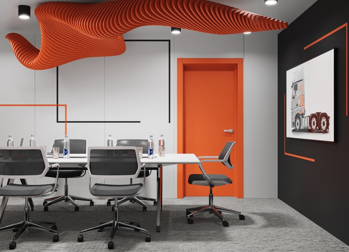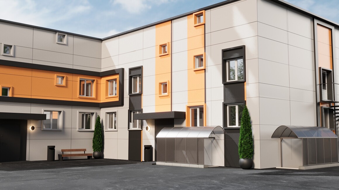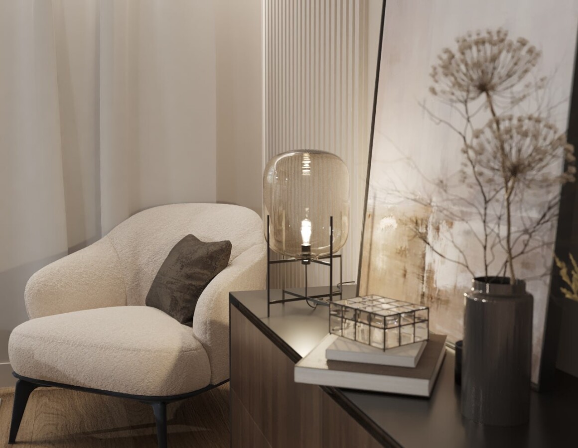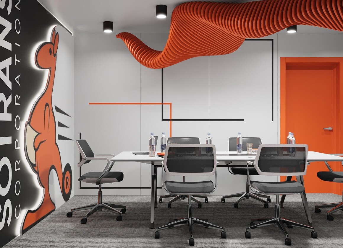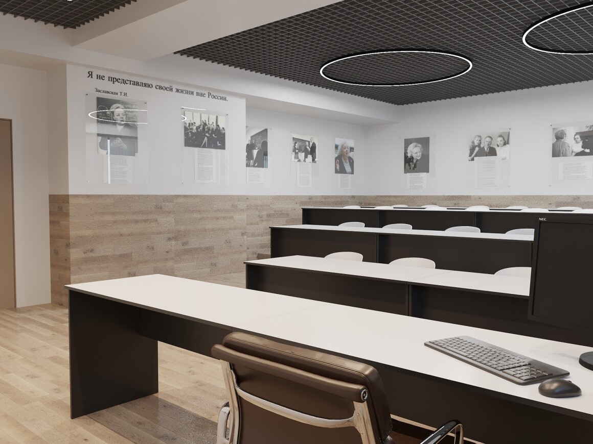 Дом состоит из двух этажей вписанные в крутой склон. Белоснежный бетонный объем второго этажа парит над ландшафтом и открывает панорамы из всех помещений на красоту окружающей природы. Из-за особенностей рельефа входная группа расположена, непосредственно, на втором этаже, где сосредоточились гостиная зона, зона столовой, кухня, кабинет, санузлы и вспомогательные помещения. Также, часть этого этажа отдана под техническую зону с котельной, постирочной и другими помещениями.
