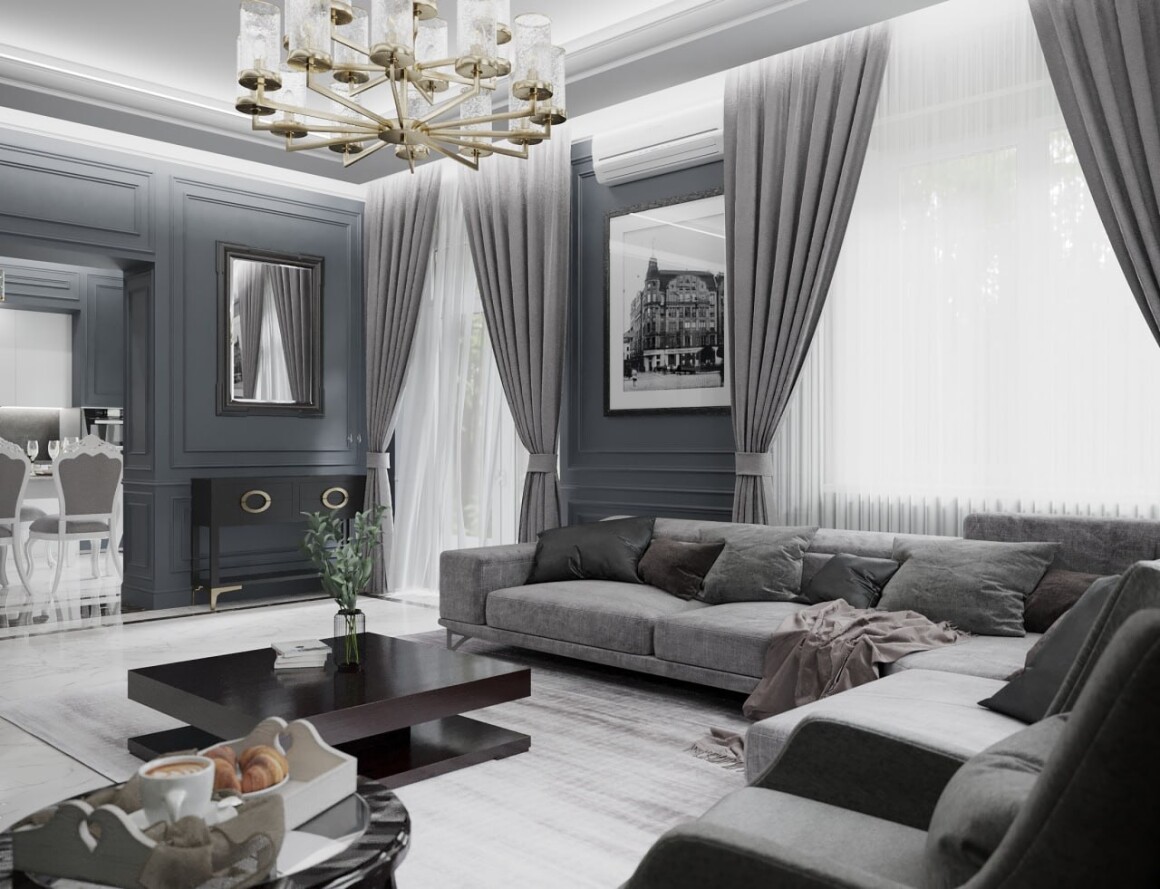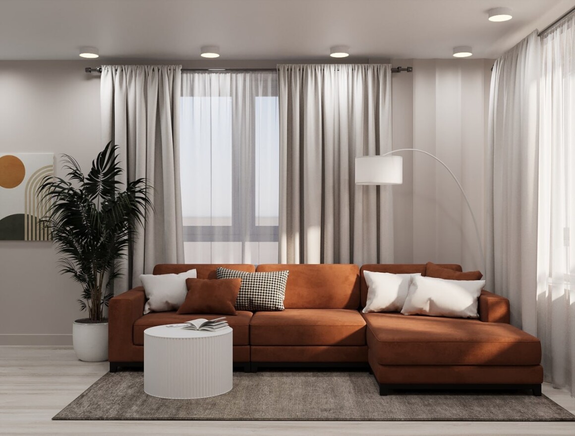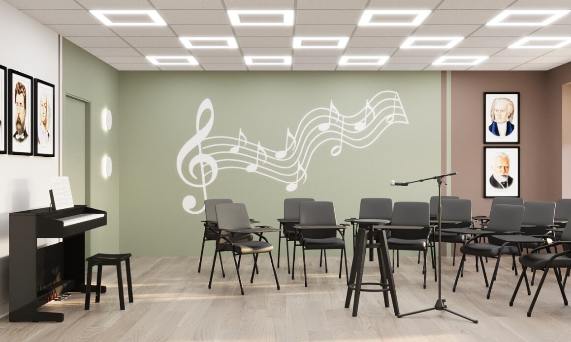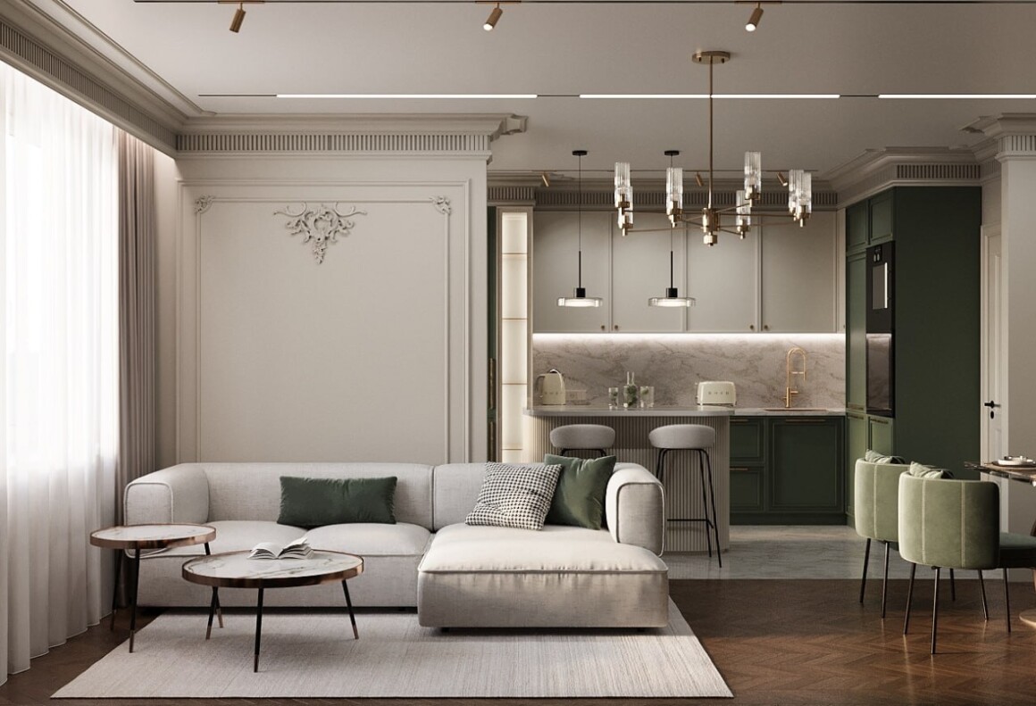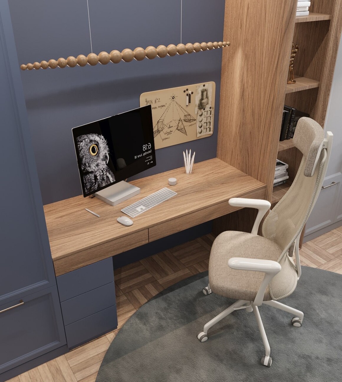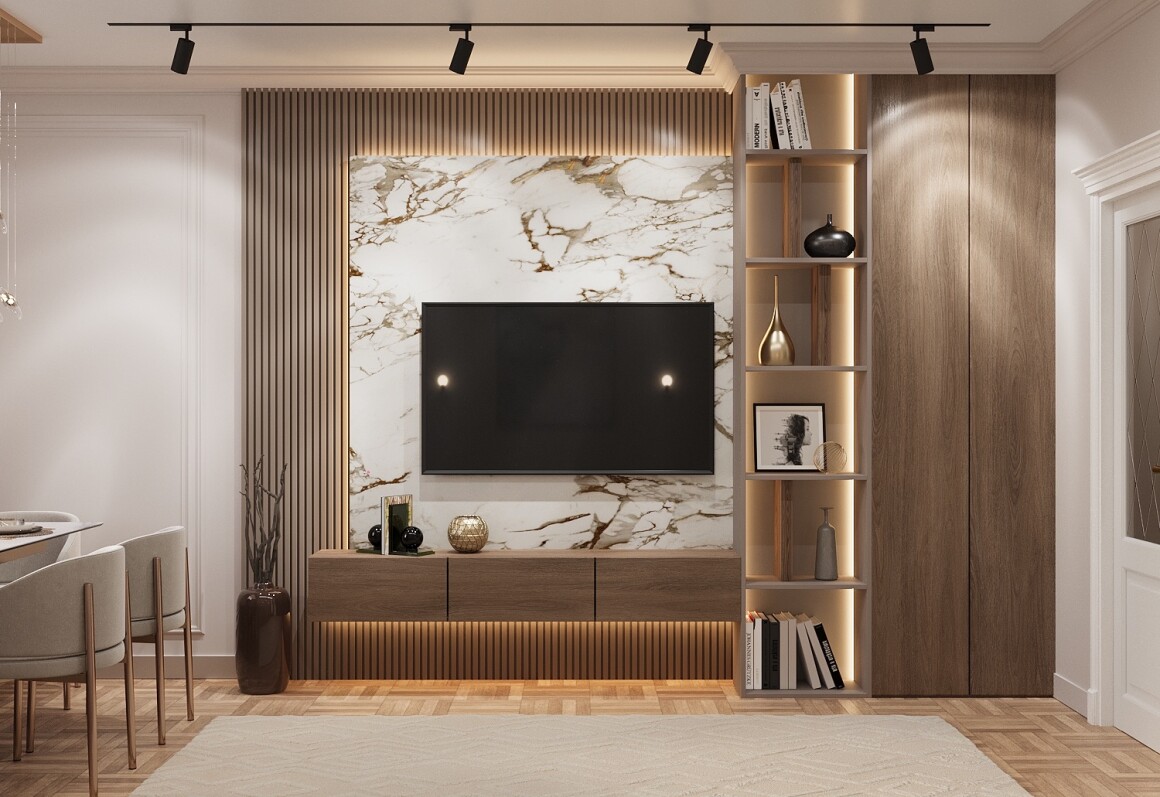 Дом состоит из двух этажей вписанные в крутой склон. Белоснежный бетонный объем второго этажа парит над ландшафтом и открывает панорамы из всех помещений на красоту окружающей природы. Из-за особенностей рельефа входная группа расположена, непосредственно, на втором этаже, где сосредоточились гостиная зона, зона столовой, кухня, кабинет, санузлы и вспомогательные помещения. Также, часть этого этажа отдана под техническую зону с котельной, постирочной и другими помещениями.